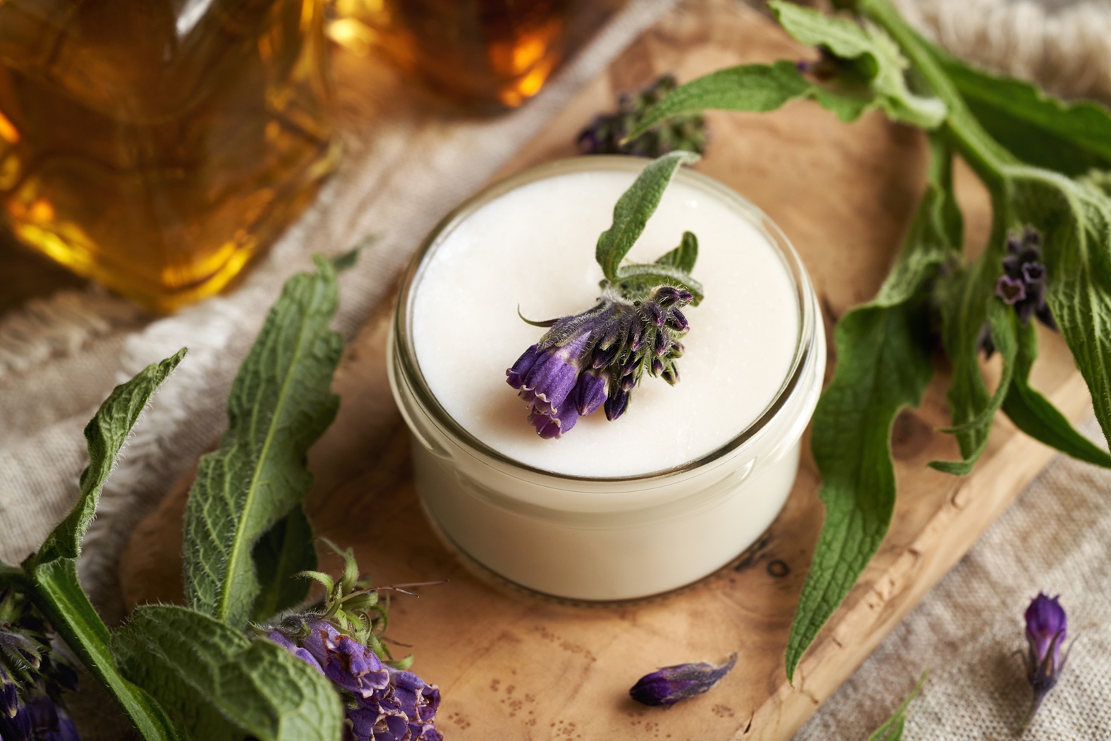 - 75 ml comfrey leaves and root infused oil – find out how to make infused oils.