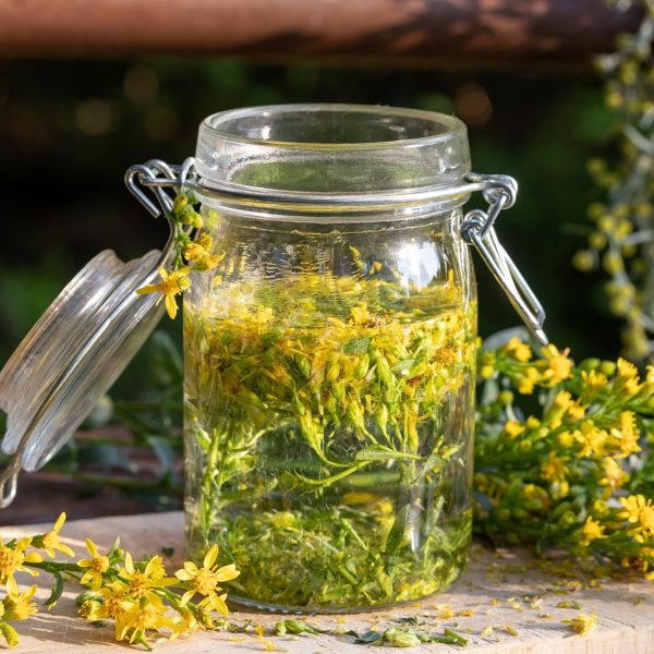 By promoting diuresis, goldenrod aids the elimination of metabolic waste, which can improve skin conditions like psoriasis, eczema, herpes, and acne (4). This encouraging movement of fluids, reduces oedema, relieving swollen ankles and puffiness around the eyes (4). Applied topically as a wash, goldenrod can assist in drying out purulent wounds, ulcers, and when used as a mouthwash, it can soothe gum abscesses (15).