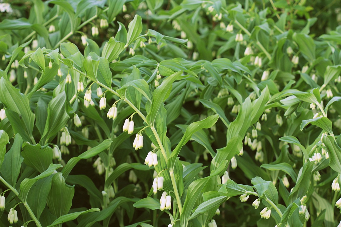 The overall plant can range in hue from yellowish-green to a lush granny-smith to almost blueish. Woodland Solomon’s seal plants tend to be smaller and more tender, while the varieties commonly grown in shade gardens and landscaping are hardy, bushy and grow in large, dense communities.