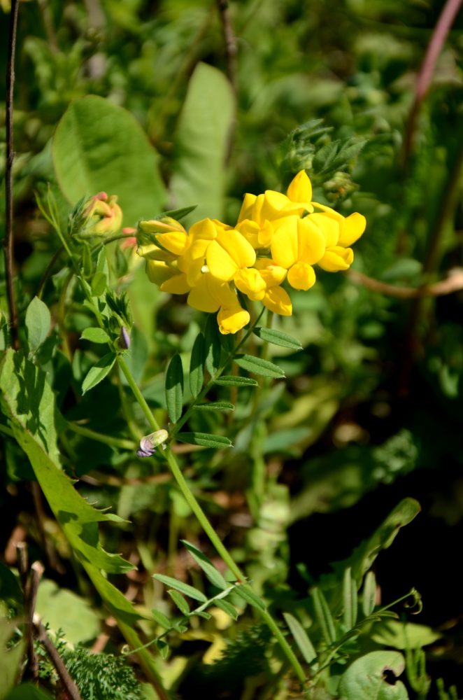 The small dark grey-green leaves are palmate with three wedge-shaped leaflets that radiate out from the centre point appearing alternately down the stem (26,28,38).  Its numerous bright yellow flowers grow in long terminal clusters that bloom from May through to September depending on the region, and have the typical appearance of Fabaceae family plants (26,28,29). Wild indigo is hermaphrodite bearing both staminate and pistillate reproductive organs on the same plant and is pollinated in the springtime by bees (39,40).