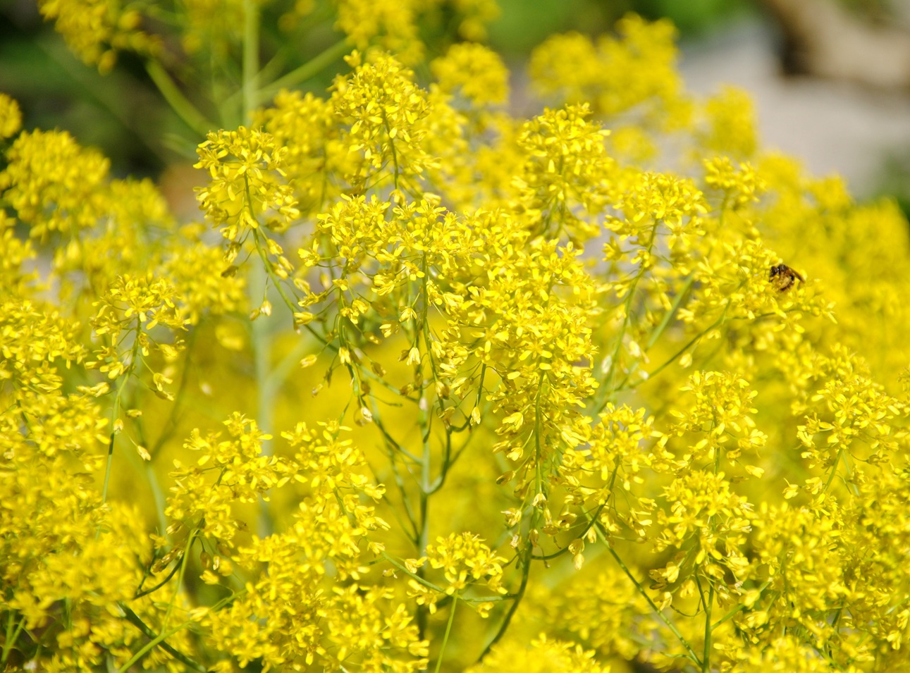 Woad can be an annual, biennial or perennial with ovate to oblong shaped basal leaves and smaller, arrow-shaped, stalkless stem leaves, and loose racemes or panicles of yellow flowers (37).